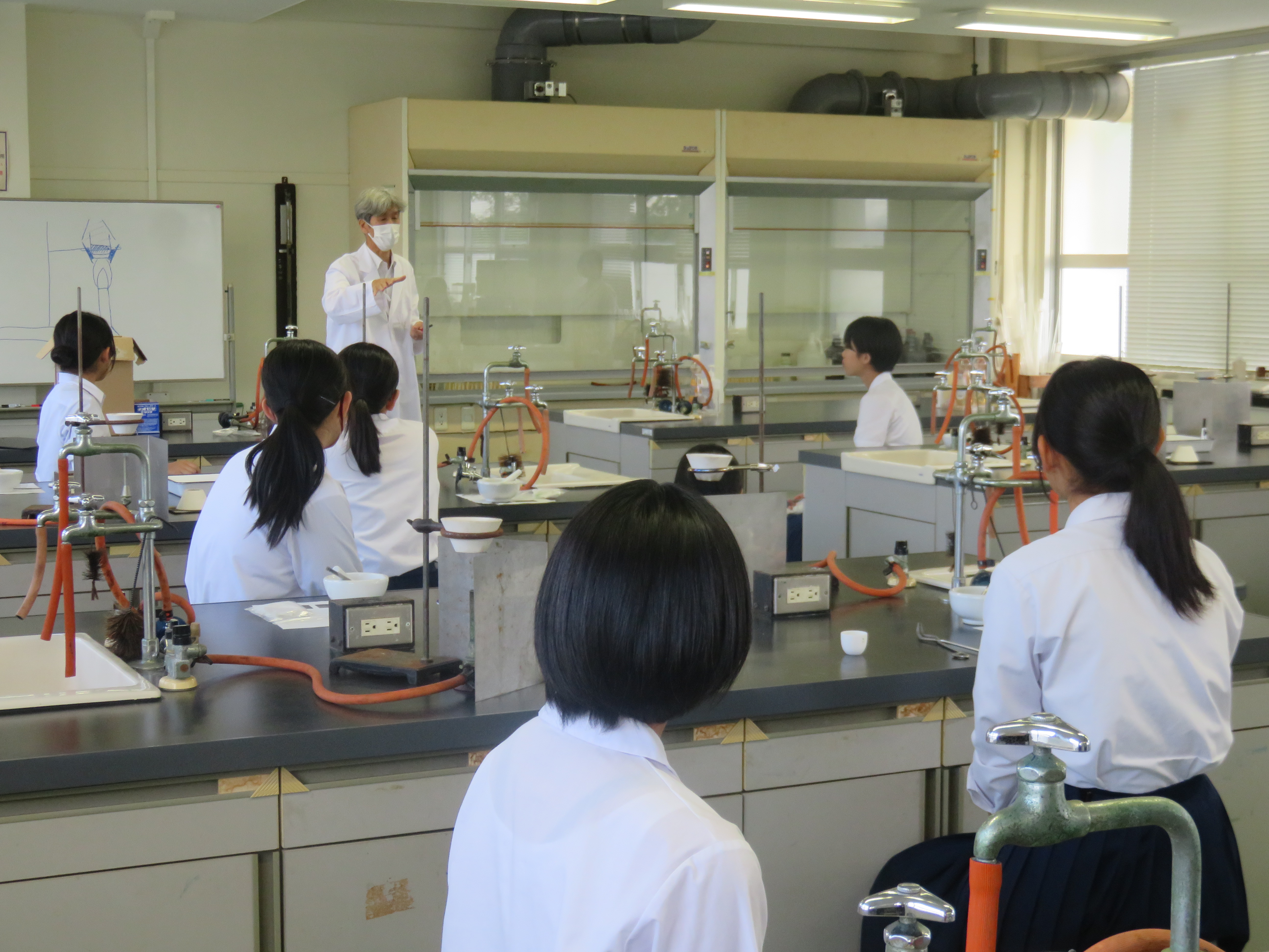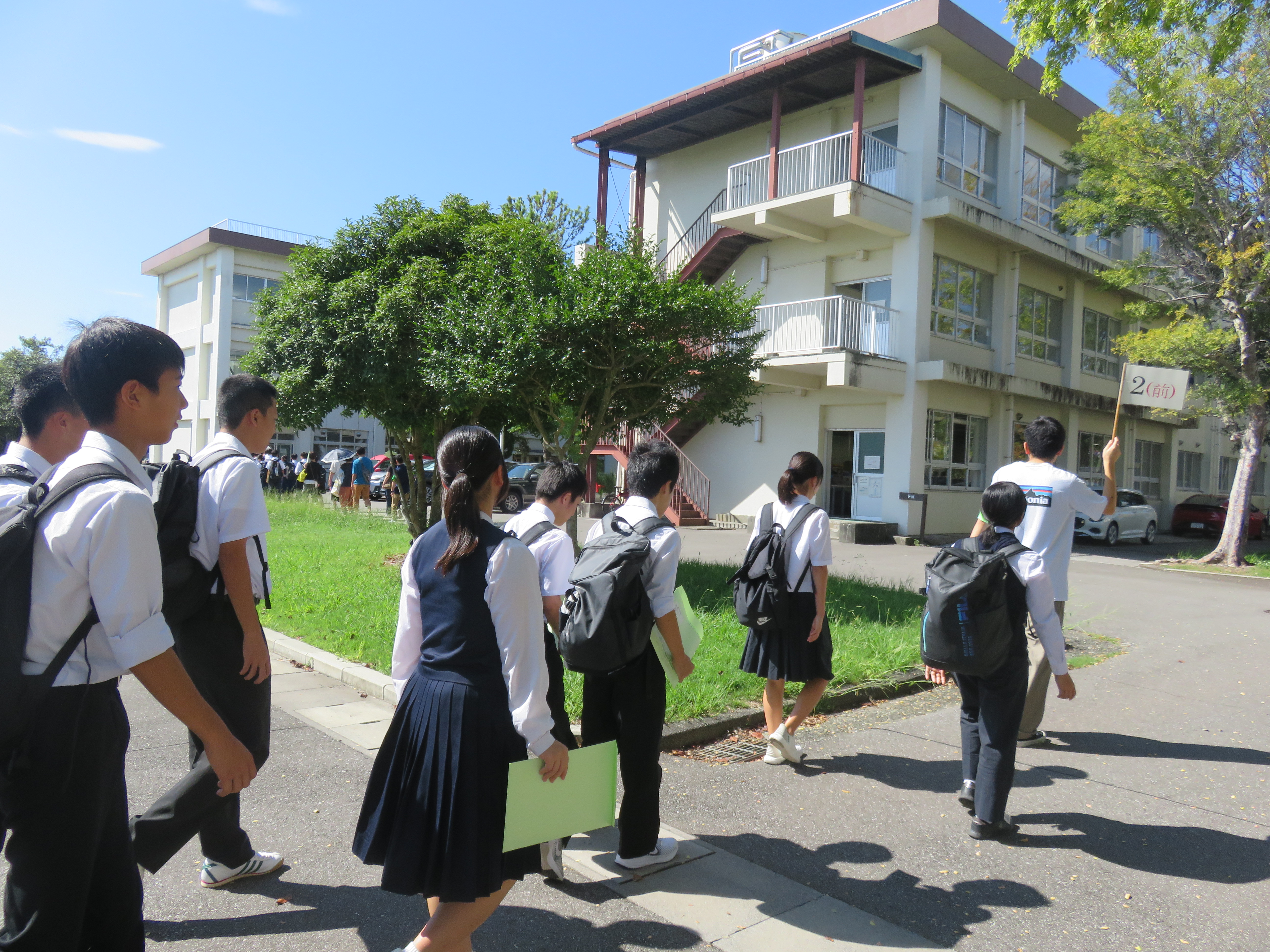 午前は班に分かれて校舎の施設・設備の見学を行いました。午後は中学生参加の体験学習のほか、先生・保護者の方対象に学校説明会を開催し、体験学習後はクラブ活動等の見学と体験を行いました。