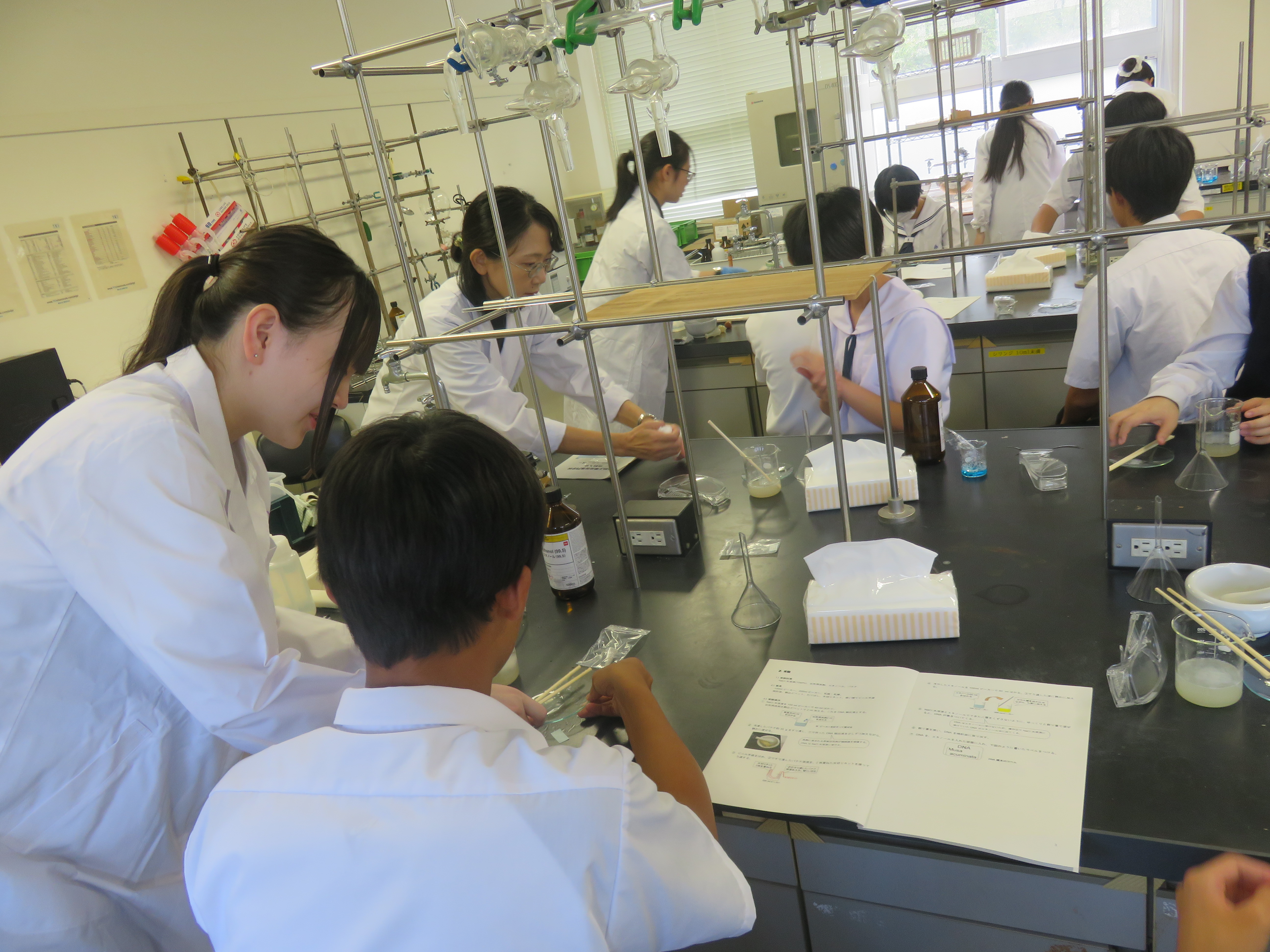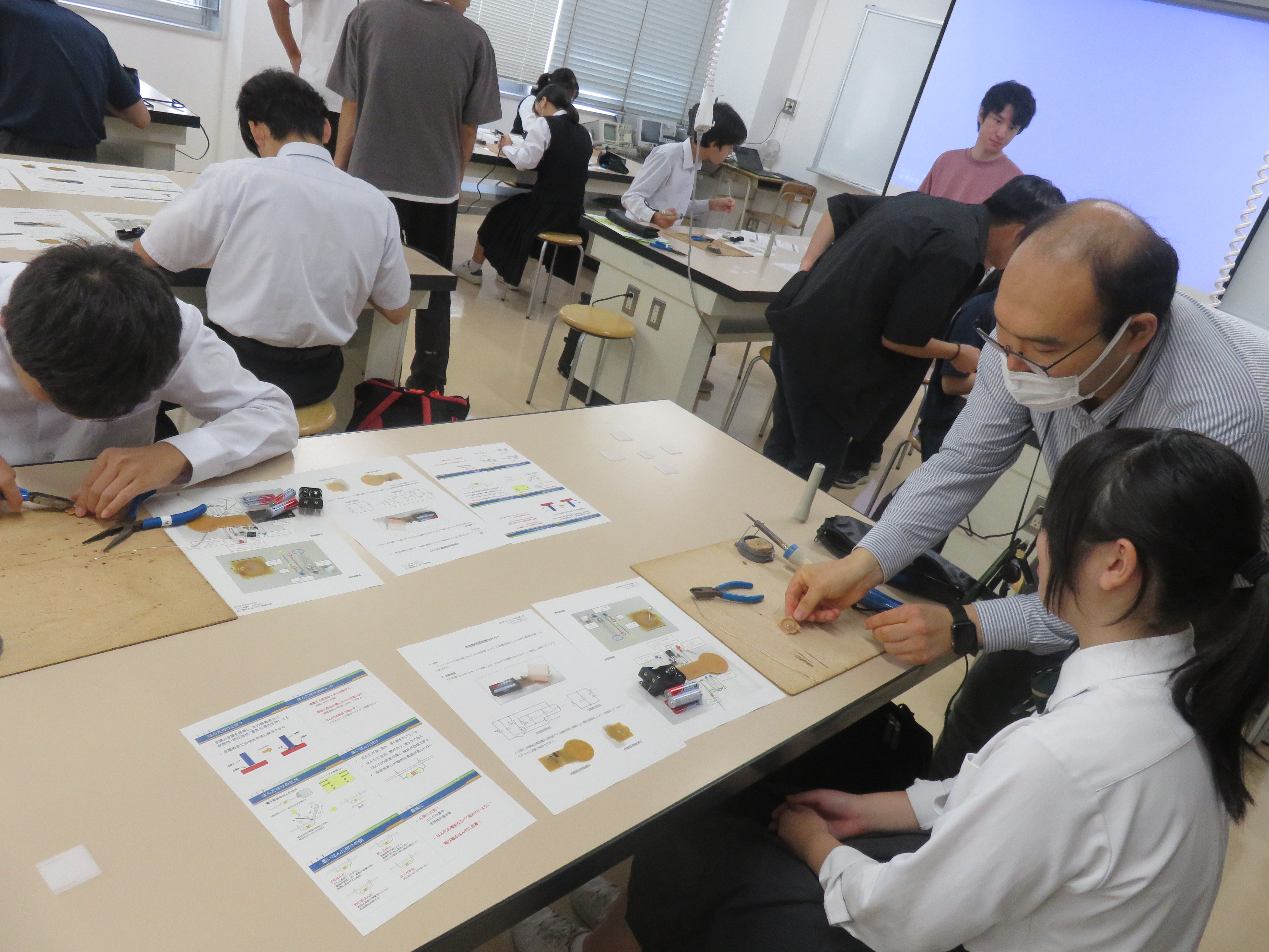 在校生のサポートを受けながら、事前に申し込んだ各テーマの実験・実習に取り組みました。
