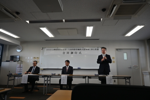 平山市長は「ふるさと納税を通じて関係人口の拡大につながり、新しい地方経済の創生につながることを期待している」と述べられ、江口校長は「現在取り組んでいる地域課題の解決に向けた活動をさらに発展させ、その成果を地域に還元していきたい」と述べました。
