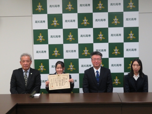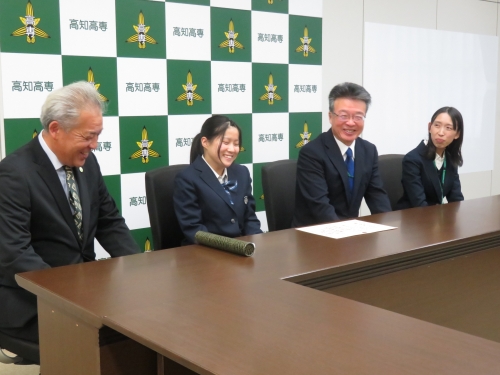 令和7年11月12日(水)に本校に来校された南国税務署の兼若署長より、受賞者の亀谷さんに賞状と記念品を贈呈されました。