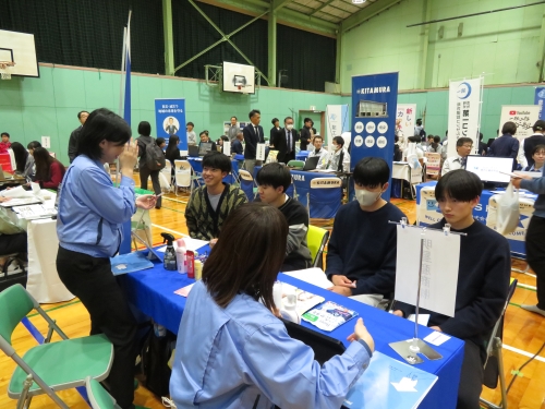学生達は各社のブースを順次訪問して、企業の業務内容について熱心に質問をしていました。広く企業の情報を得る良い機会となりました。