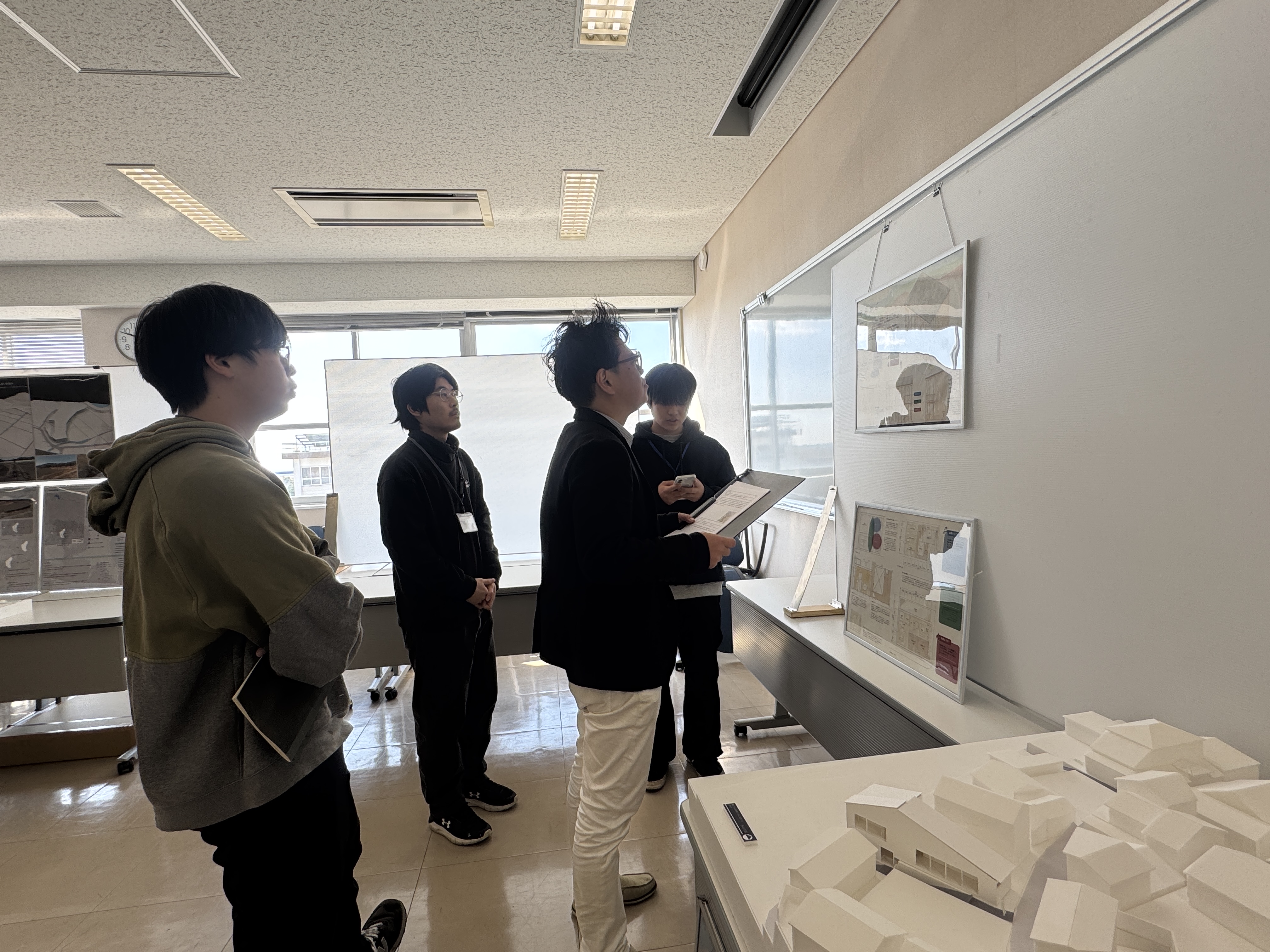 県内で活躍する建築家を講評者として招聘し、ポスターセッション形式でお互いの作品を発表・講評を行いました。